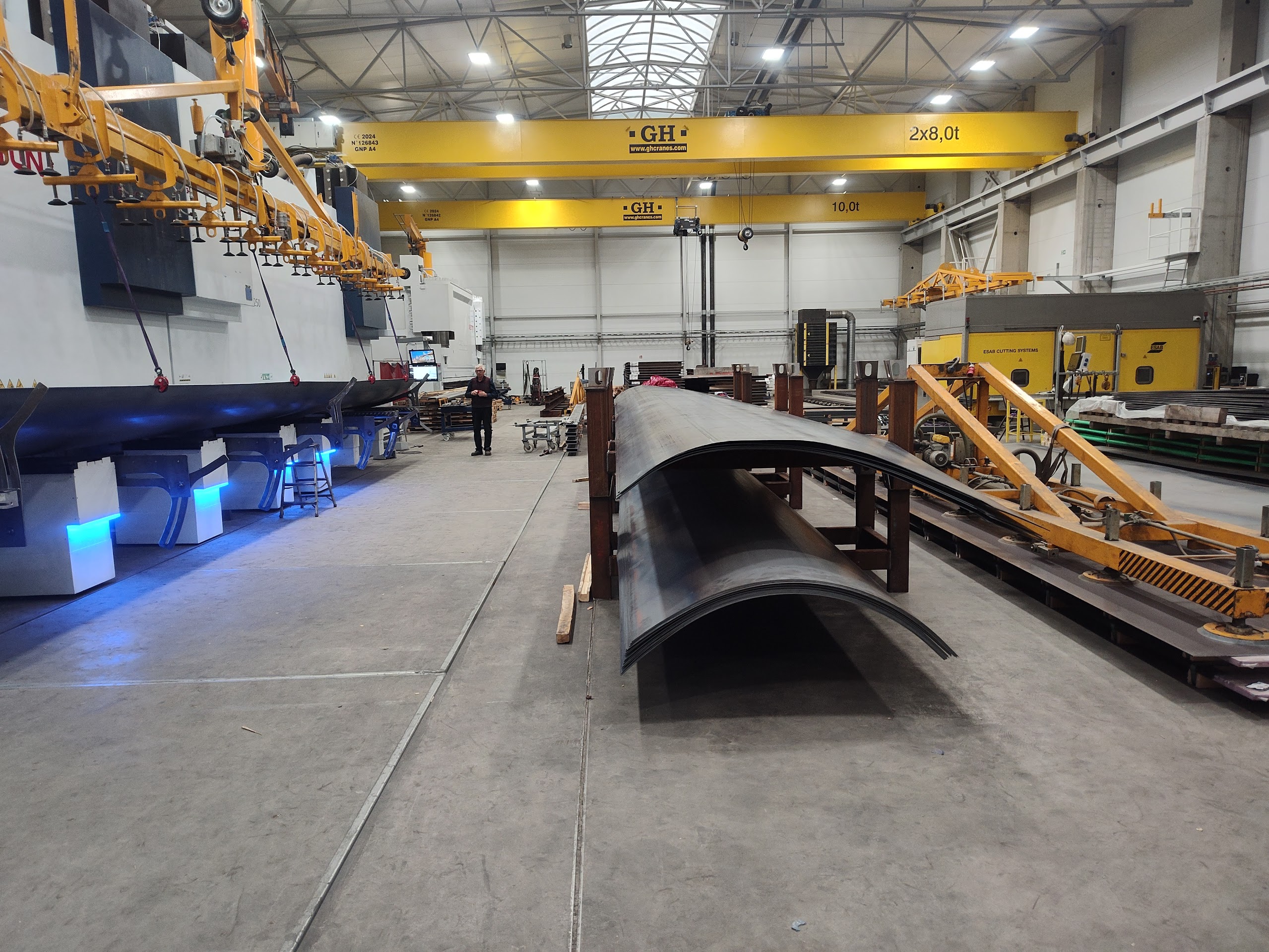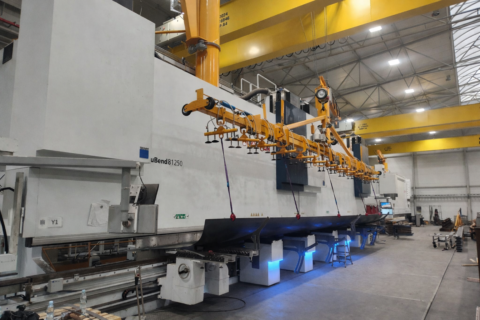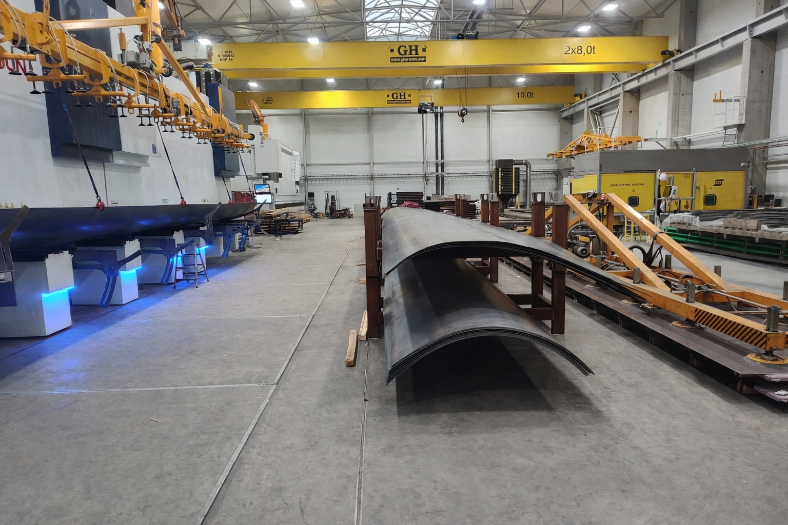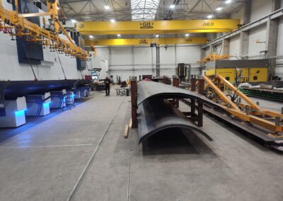 Der nächste Schritt ist das Biegen auf einer modernen Abkantpresse mit einer Länge von 16 Metern und einem Druck von 2500 Tonnen.