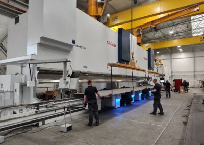 Dank zweier neuer Abkantpressen mit einem Druck von bis zu 2.750 Tonnen werden wir im Stande sein, dicke Bleche und Platten bis zu 100 mm Dicke auf einem Meter Länge zu biegen. Die maximale Biegelänge beträgt 16 Meter bei einer Dicke von 20 mm.